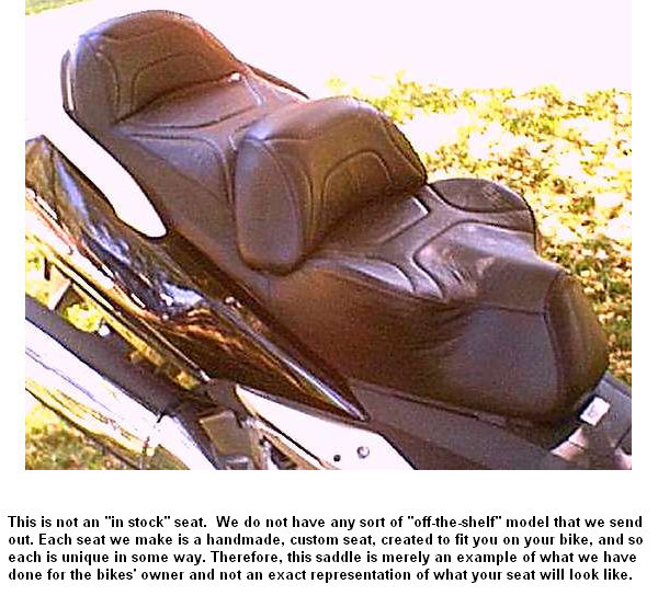 NOTE: Please be aware that this photo is presented for reference purposes only We no longer build seats for the Honda Silverwing unless the owner is able to personally come up to our shop. Due to the size, complexity, and astronomical shipping fees related to this seat, we no longer build it for mail-in seat customers. |