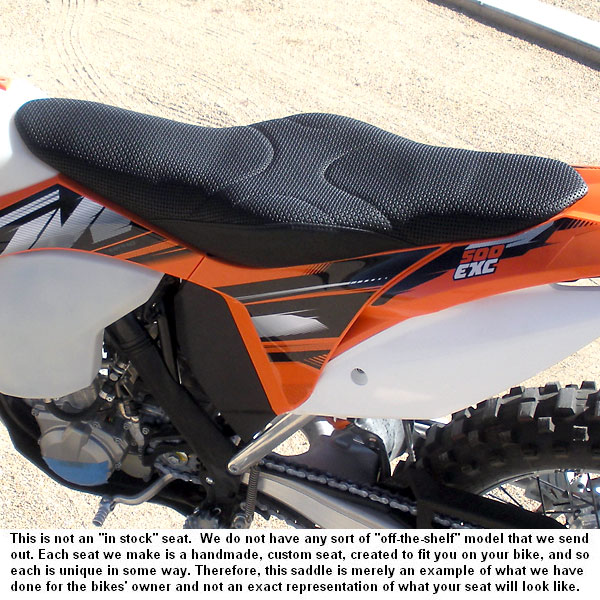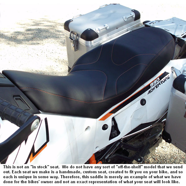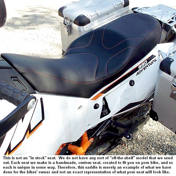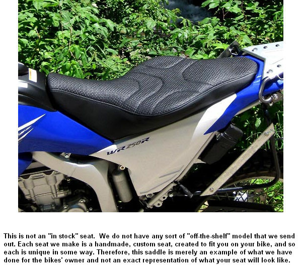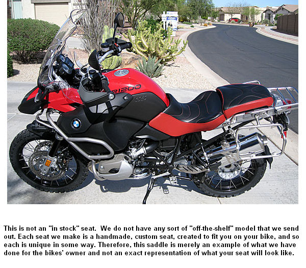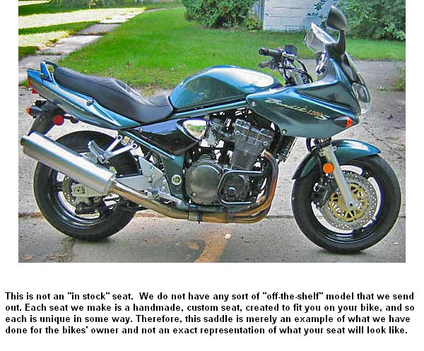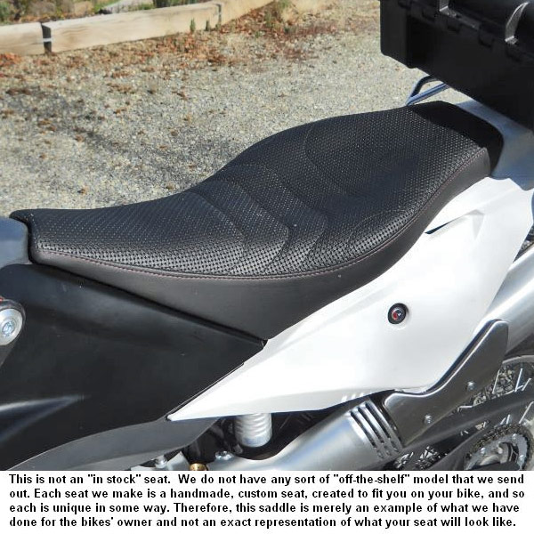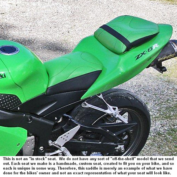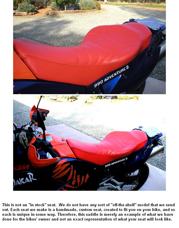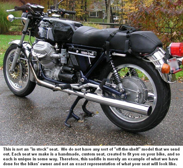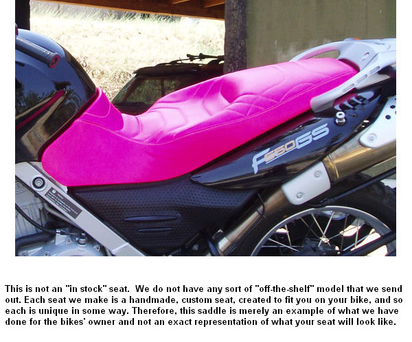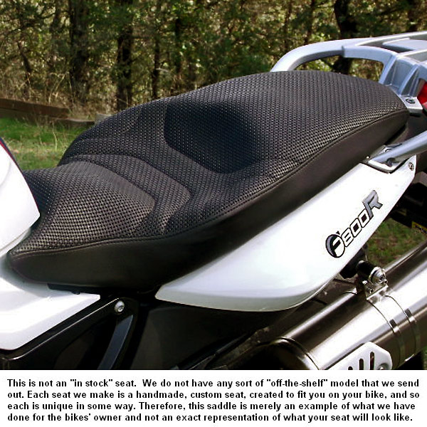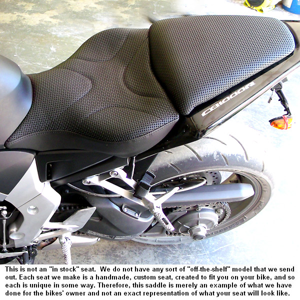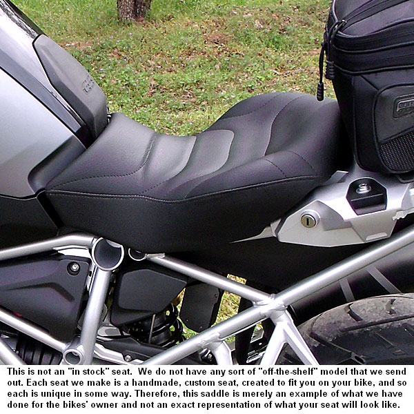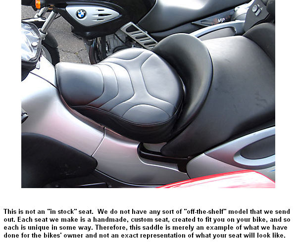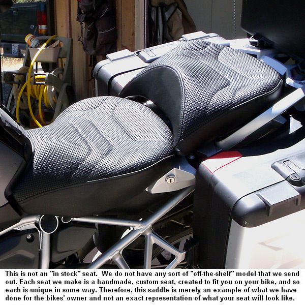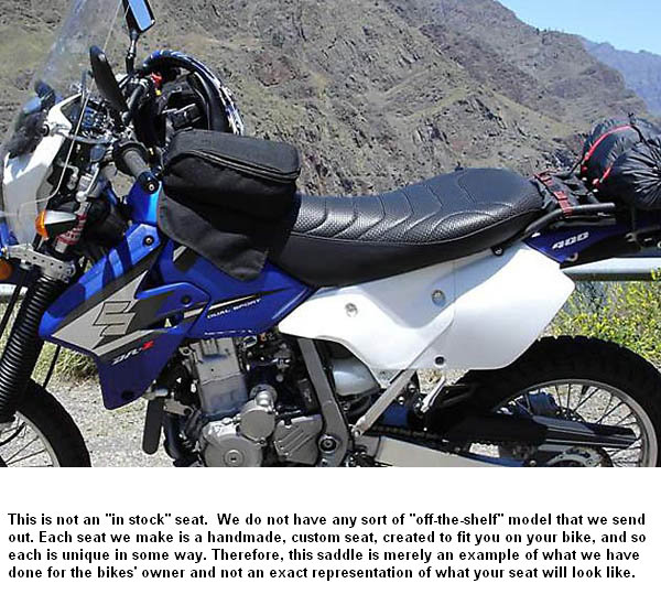 | Photo Gallery Use the menu below to view these photos of saddles made by Rick Mayer Cycle. This page is constantly being updated as new photos become available. All image links will open in a new window (or tab). Close the image window to return here. Please be aware that we make seats for any bike imaginable. For the most part, the photos listed here are from our customers who send them to us, or they are photos taken in our shop at the completion of a ride-in appointment. We always put photos online as soon as we can. This gallery represents our available stock of photos. These are not "in stock" seats. Each seat we make is a handmade, custom seat, created to fit you on your bike, and so each is unique in some way. We do not have any sort of "off-the-shelf" model that we send out. Therefore, these photos are merely examples of what we have done for the bikes' owners and not an exact representation of what your seat will look like. Note: Any seats described as "low" or "for the short rider" have been modified from stock to increase the customer's ground clearance. Please see our FAQ's (or contact Rick) for more information about this issue.